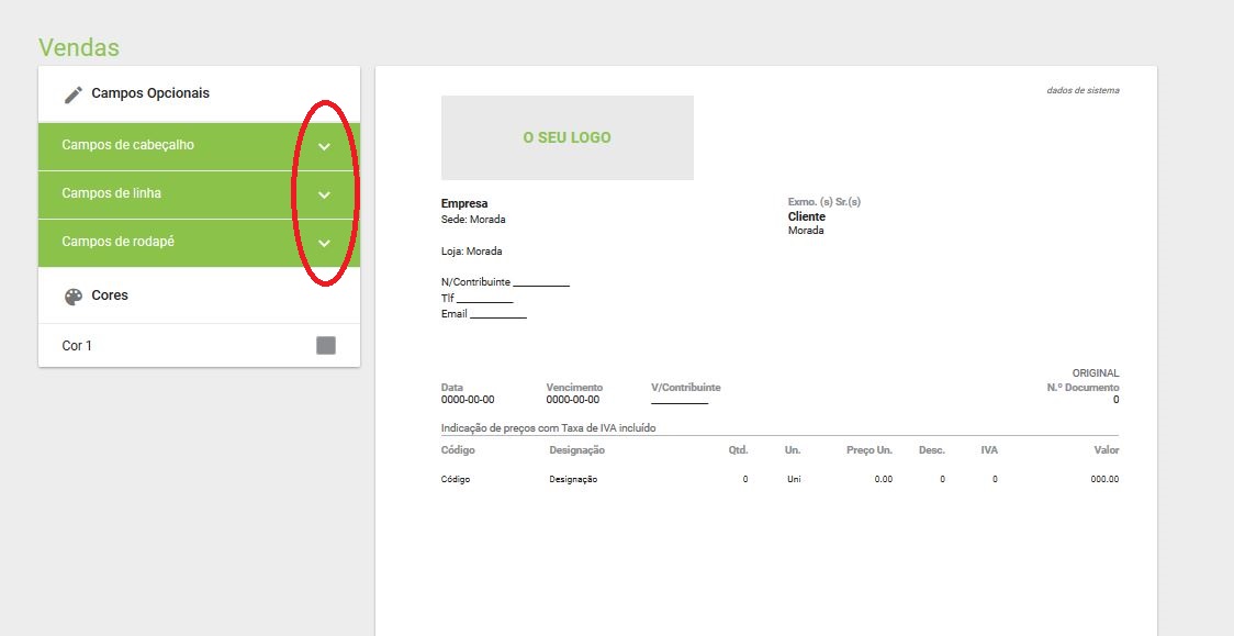 2 – O logótipo deverá ser introduzido em formato jpg em Configurações -» separador Dados gerais -» campo Imagem do Logótipo.