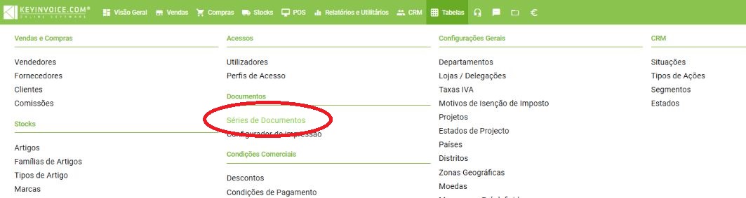 Para criar uma nova Série de Documentos deverá ir a : Tabelas -» Séries de Documentos -» Novo.